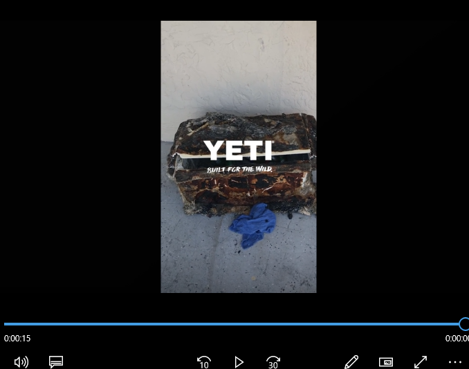 불탄 배에서 구출한 예티 아이스박스. 안에 얼음이 아직도 녹지 않고 그대로 있는 장면. 이런 한 컷이 예티의 “브랜드 증거”가 됩니다.
