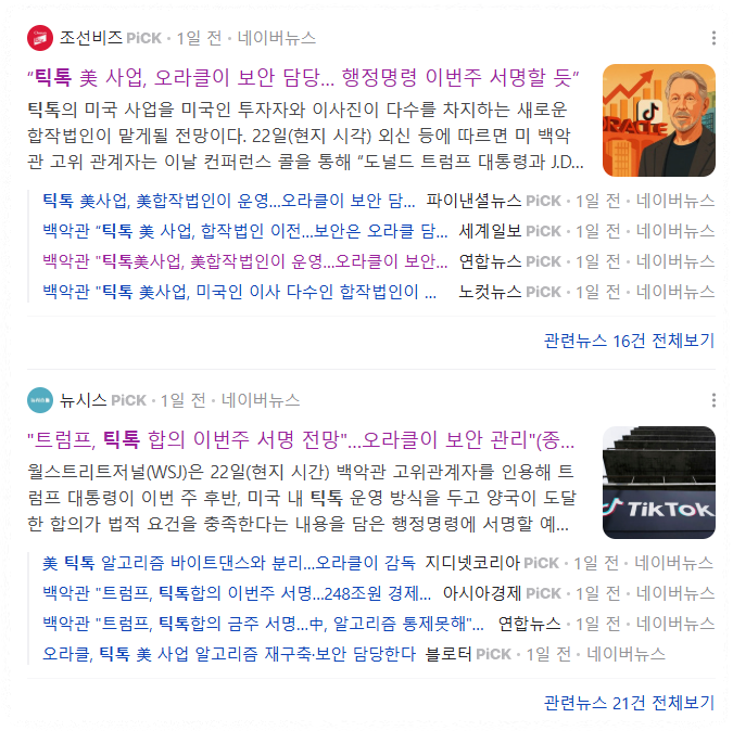 “틱톡 美 사업, 오라클이 보안 담당… 행정명령 이번주 서명할 듯” (조선비즈 2025-9-23)